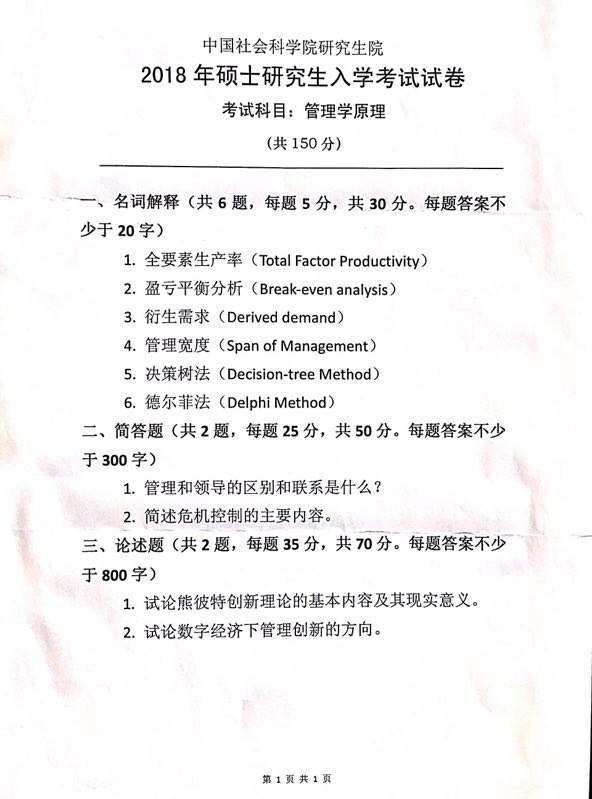 社科院考研辅导班:2018年中国社会科学院考研管理学原理专业课真题分享