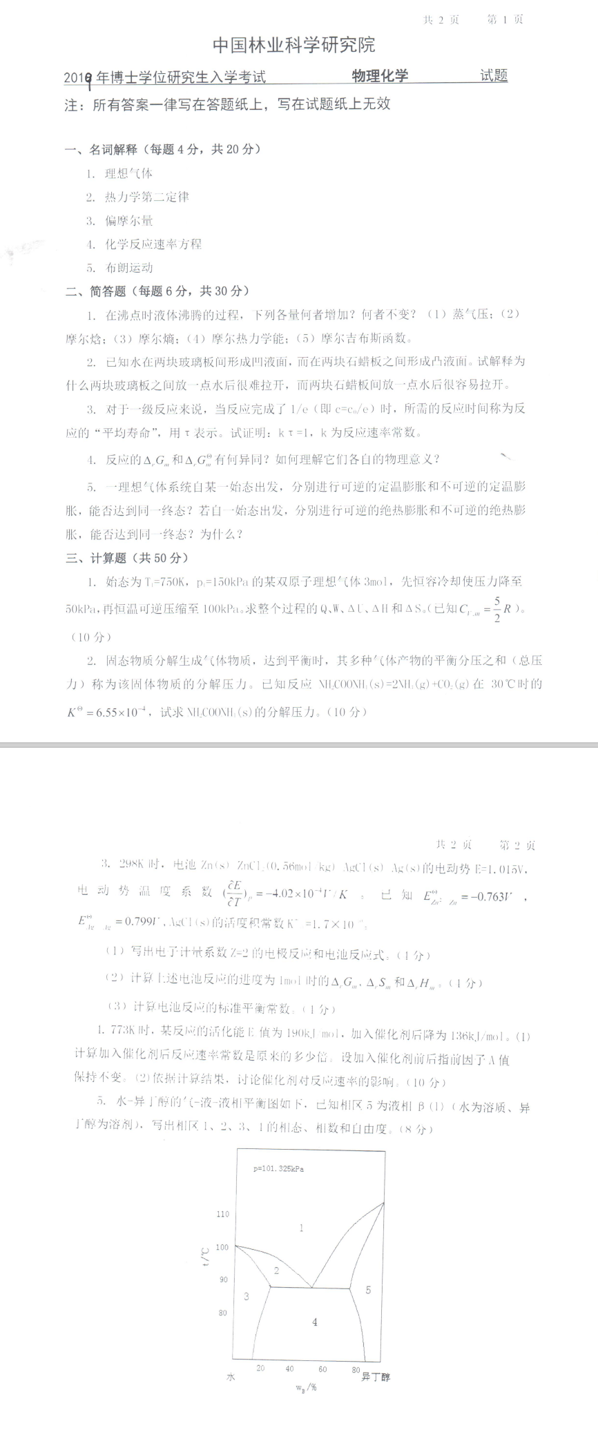 林科院考博辅导班:2019年中国林业科学研究院博士研究生入学考试3006物理化学考试真题