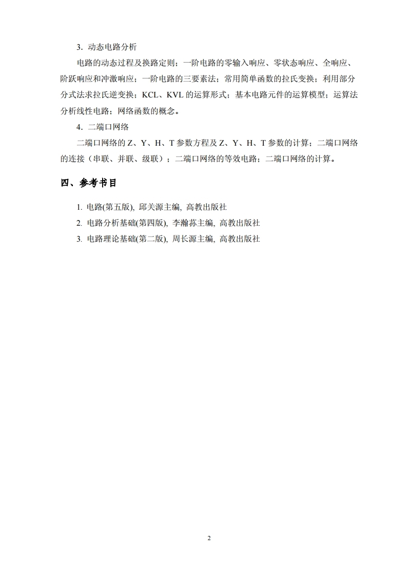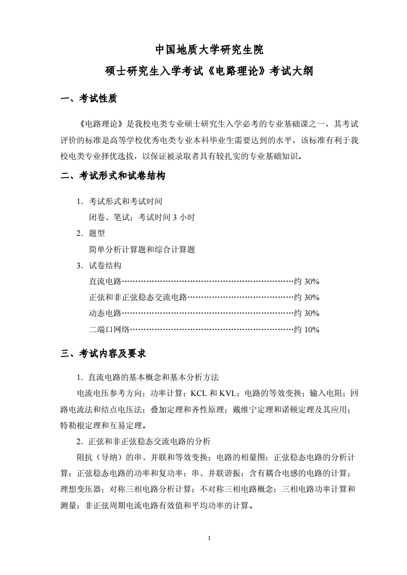 中国地质大学考研辅导班: 中国地质大学(武汉)2020年《电路理论》考试大纲