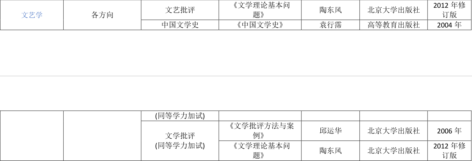 不指定参考书,考察范围为:语言、文学基本常识、阅读、写作