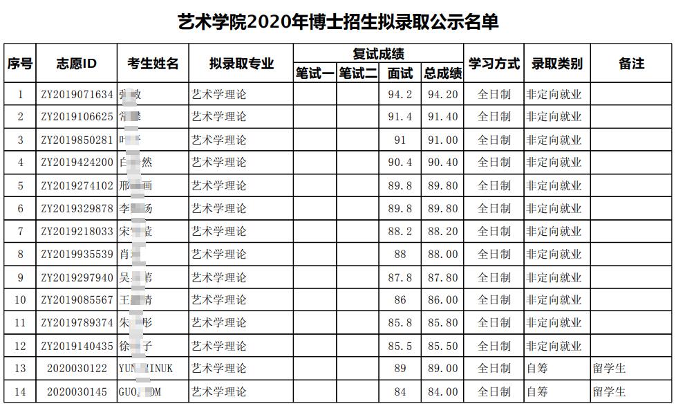 北大考博辅导班:2020年北京大学艺术学院博士研究生招生拟录取名单