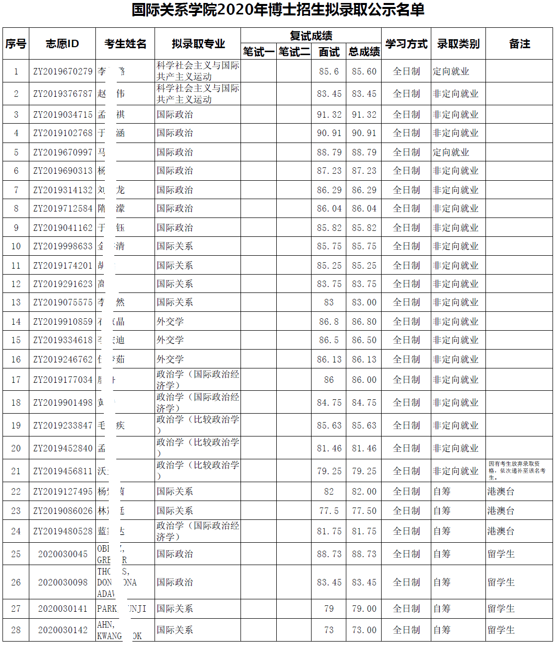 北大考博辅导班:2020年北京大学国际关系学院博士研究生拟录取名单公示
