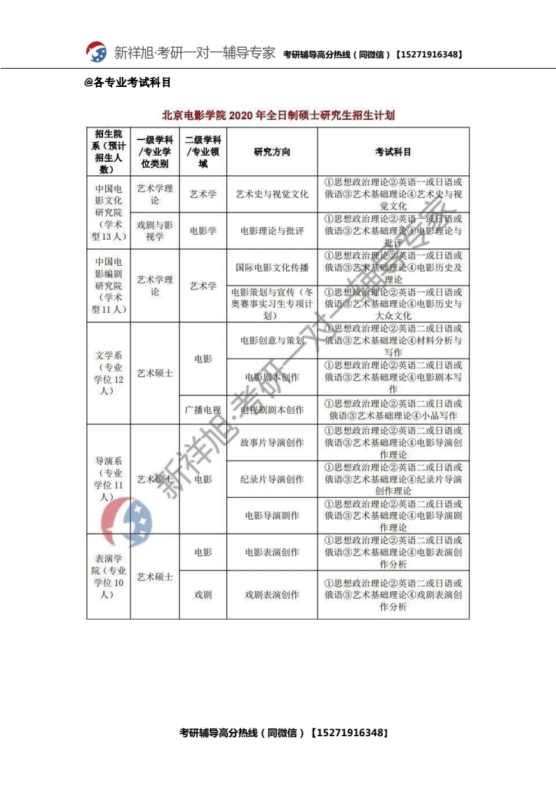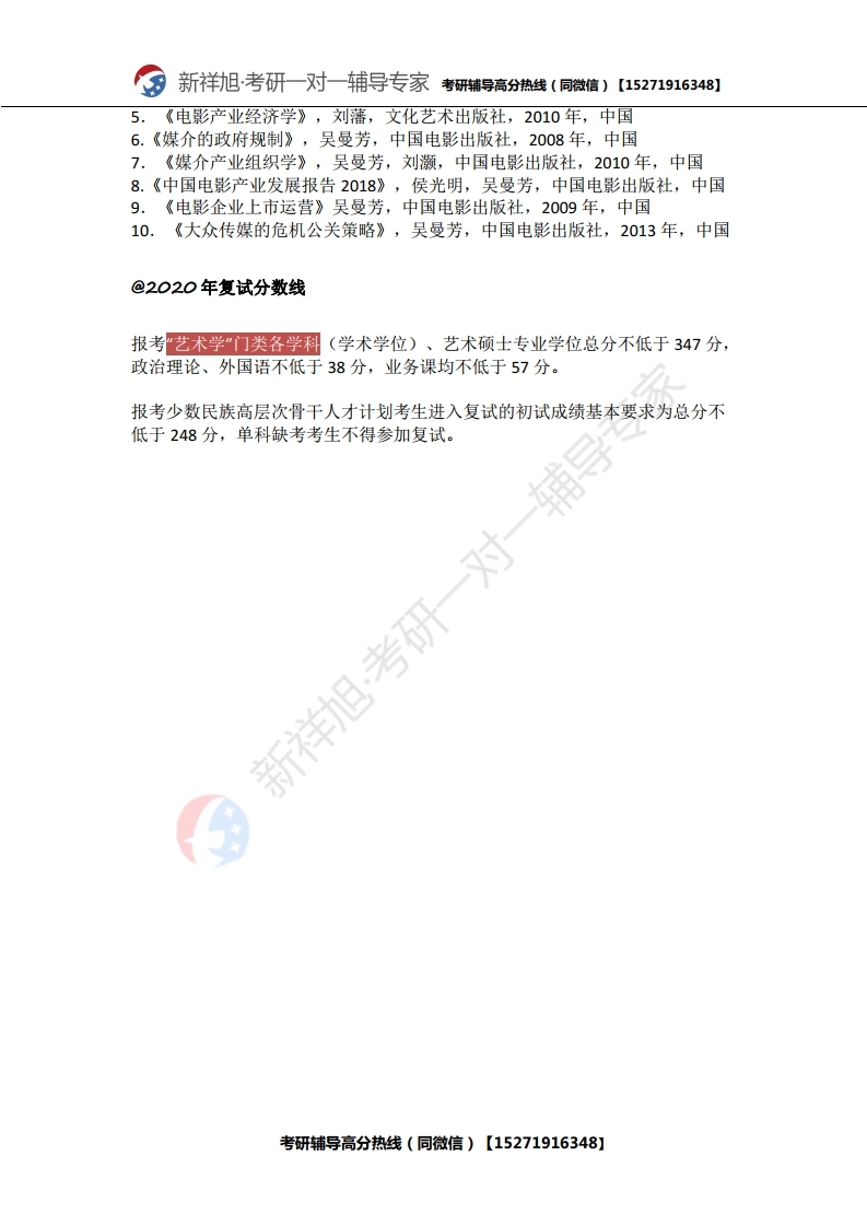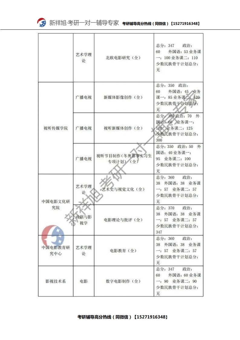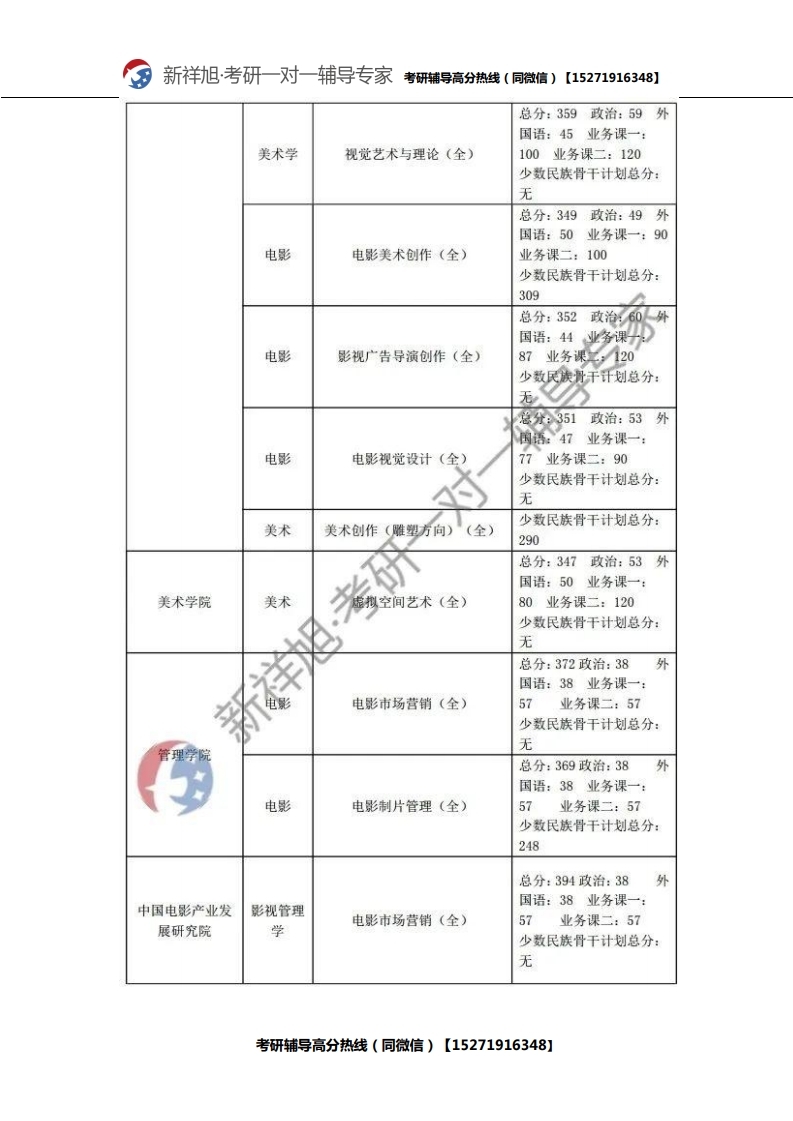 新祥旭考研辅导:2021年北京电影学院研究生考试必看考试科目、参考书目、复试分数