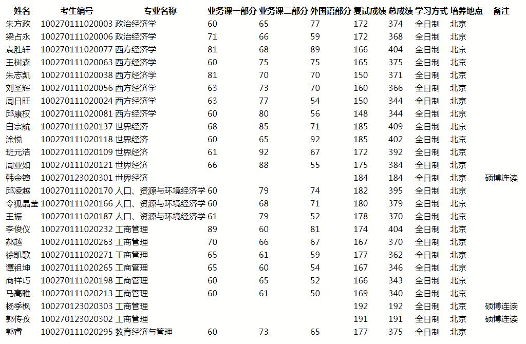 北师大考博辅导班:2020年北京师范大学经济与工商管理学院考博招生拟录取名单公示