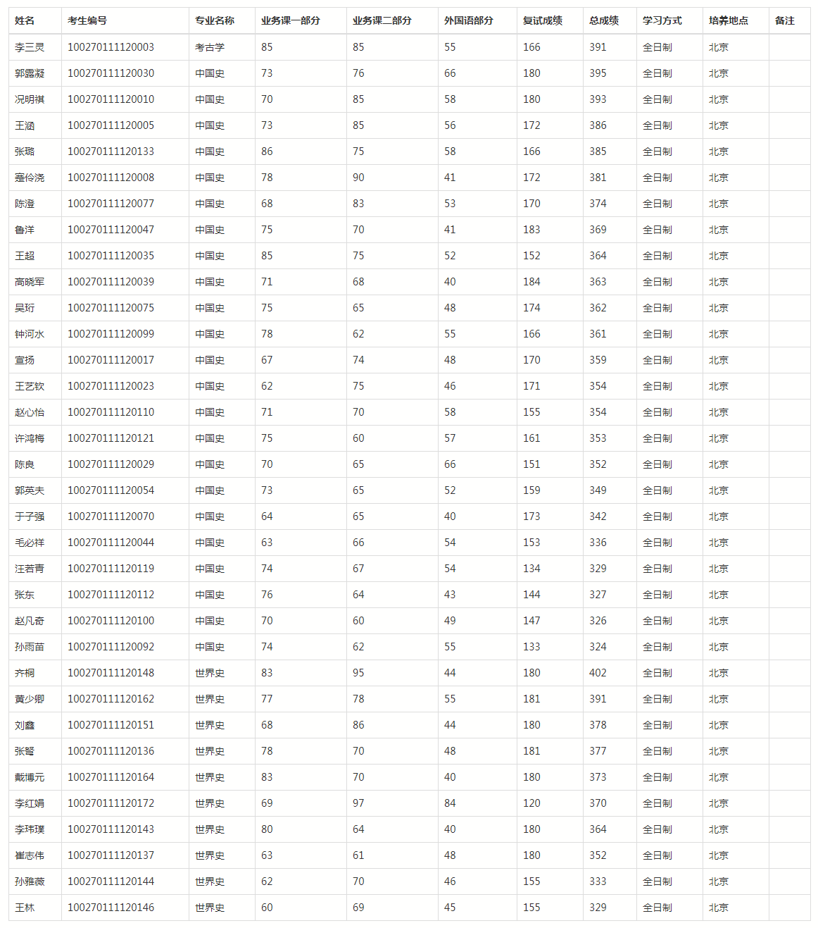 北师大考博辅导班:2020年北京师范大学历史学院考博招生拟录取名单公示