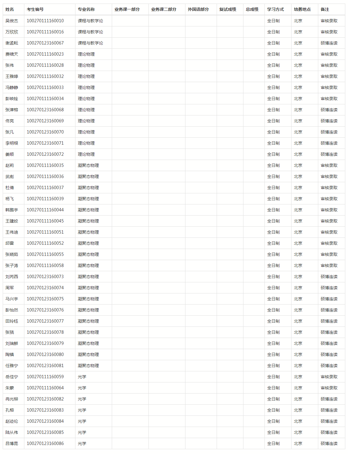 北师大考博辅导班:2020年北京师范大学物理学系考博招生拟录取名单公示