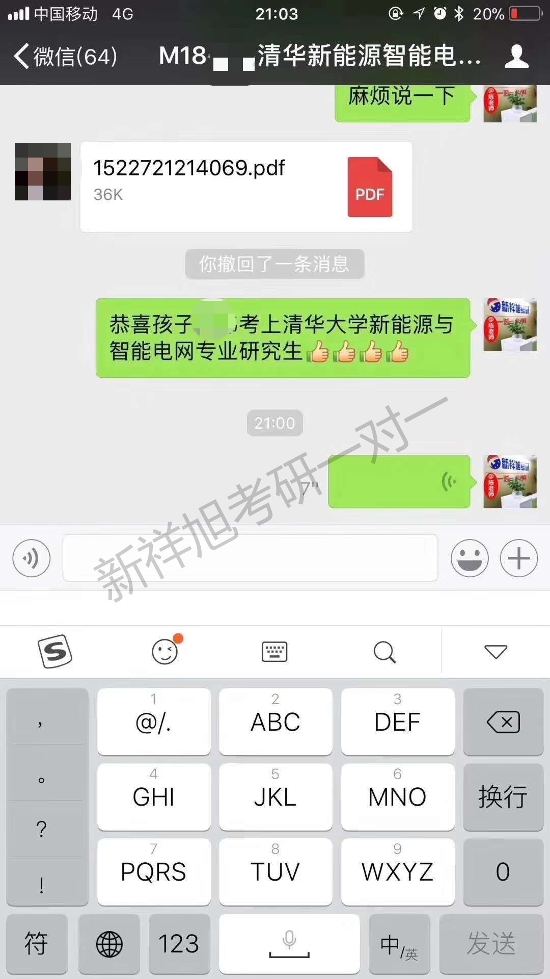 喜报:恭喜新祥旭2018年学员张同学被清华大学新能源智能电网专业成功录取