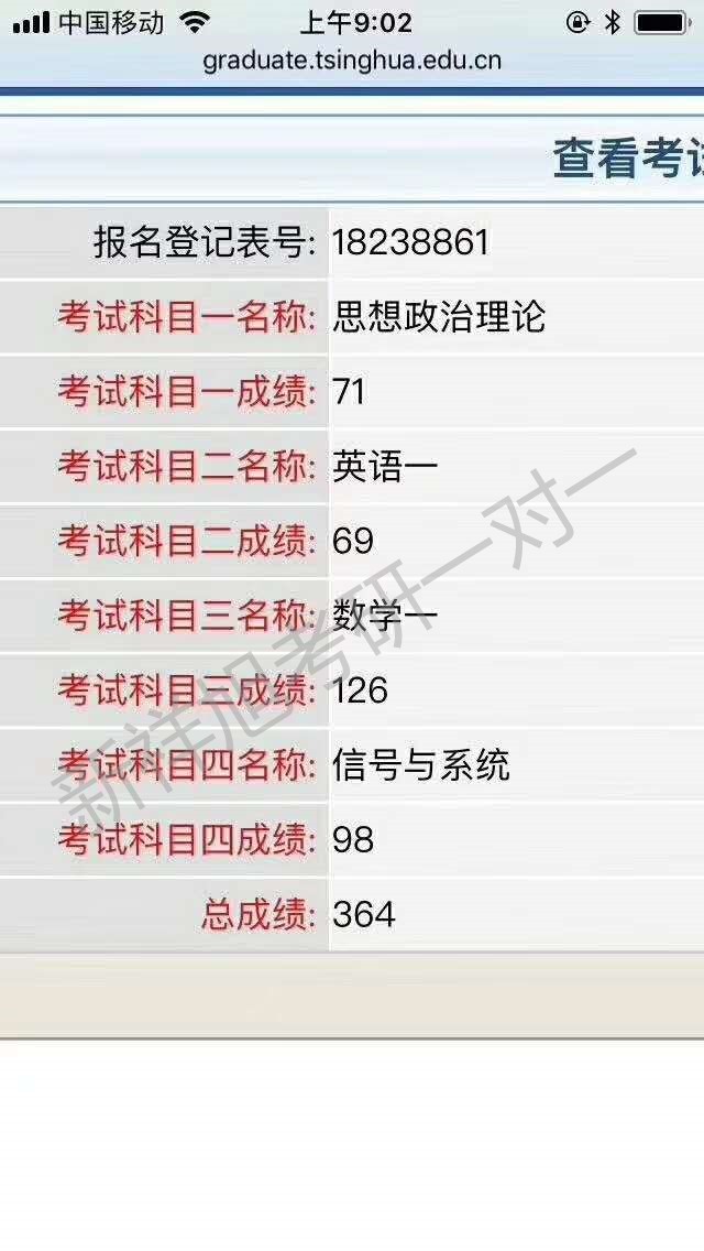 2018年新祥旭学员清华大学信息与通信工程刘同学初试成绩: