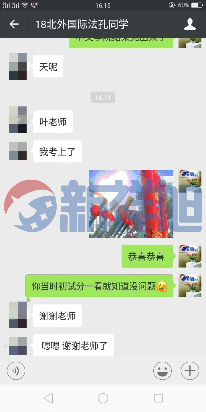 喜报:恭喜新祥旭2018年学员孔同学被北京外国语大学国际法专业成功录取