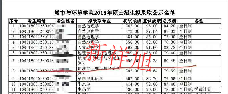 2018年新祥旭张学员北京大学地理学拟录取截图: