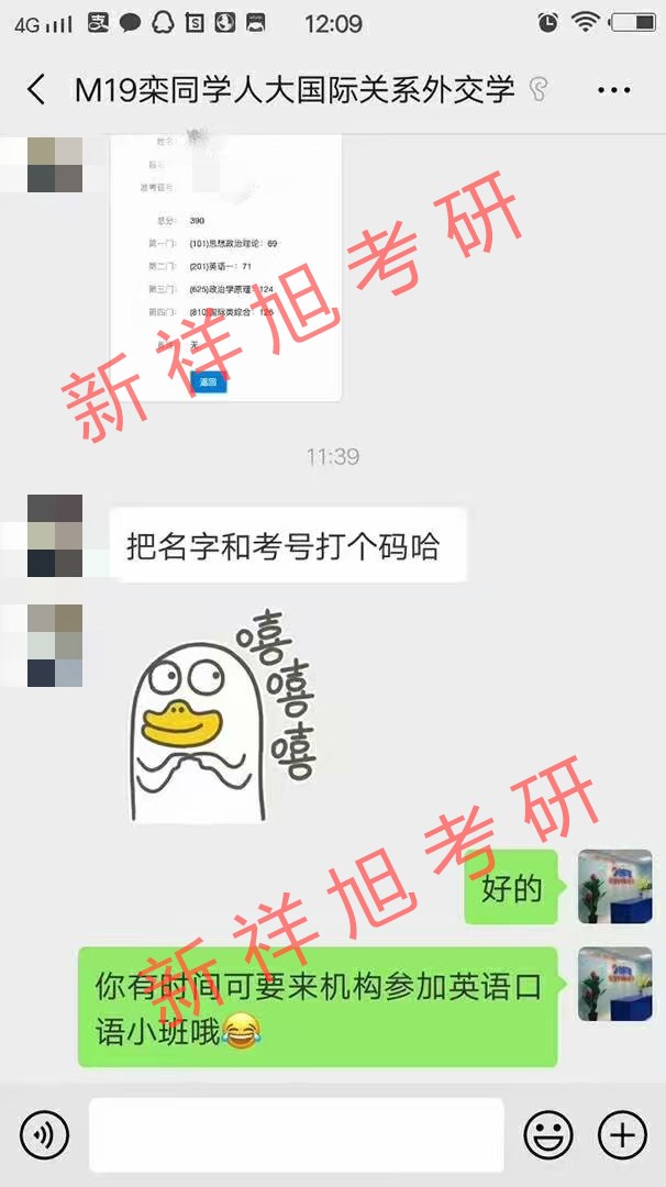 新祥旭2019学员栾同学与机构工作人员聊天截图: