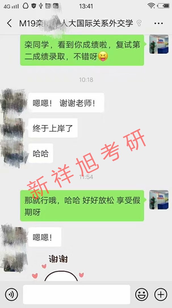 喜报:恭喜新祥旭2019年学员栾同学被中国人民大学外交学专业成功录取