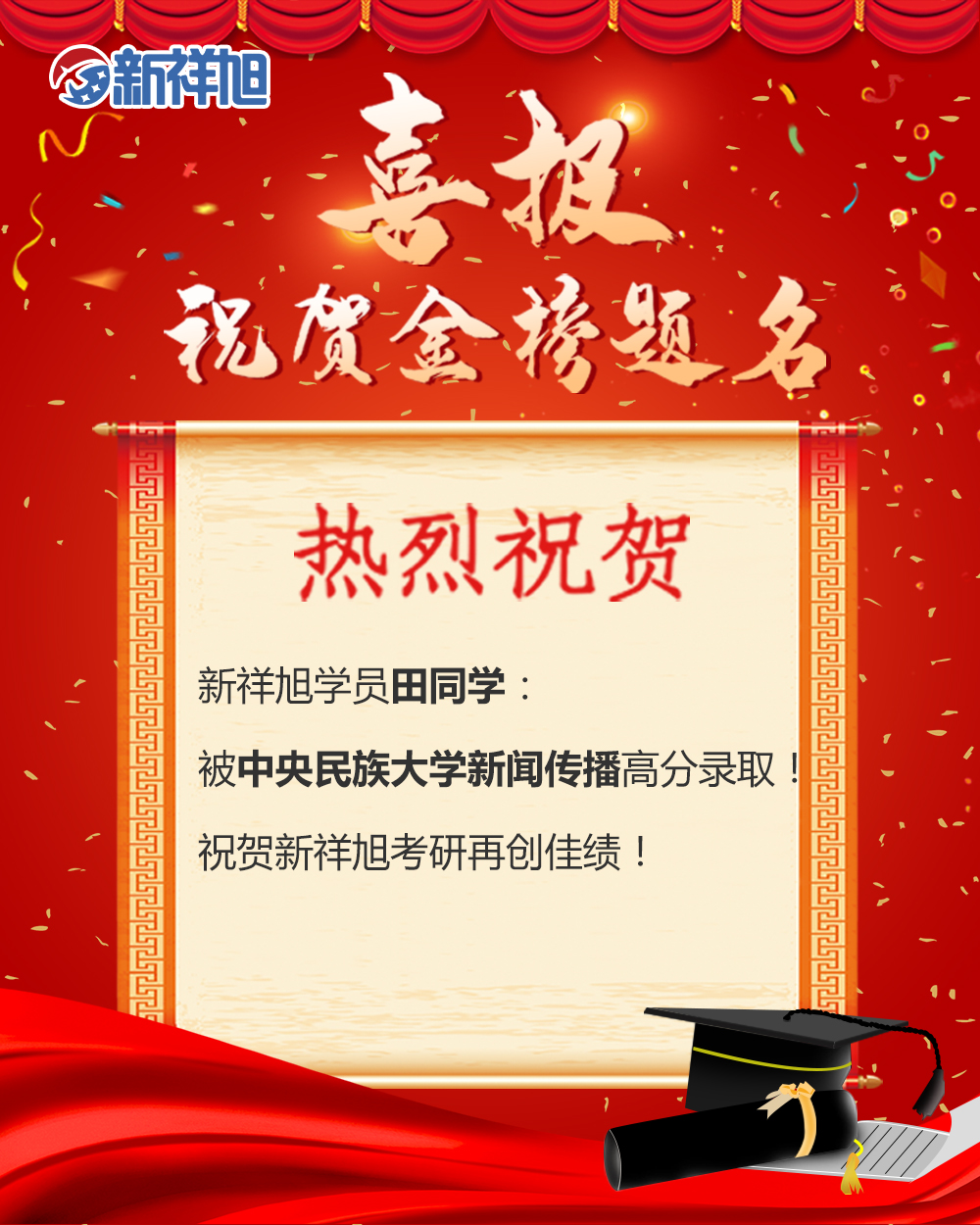 喜报:恭喜新祥旭2019年学员田同学被中央民族大学新闻传播专业成功录取