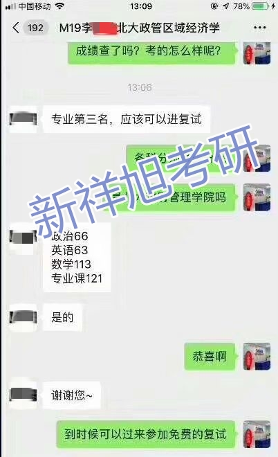 喜报:恭喜新祥旭2019年学员李同学被北京大学政管区域经济学成功录取