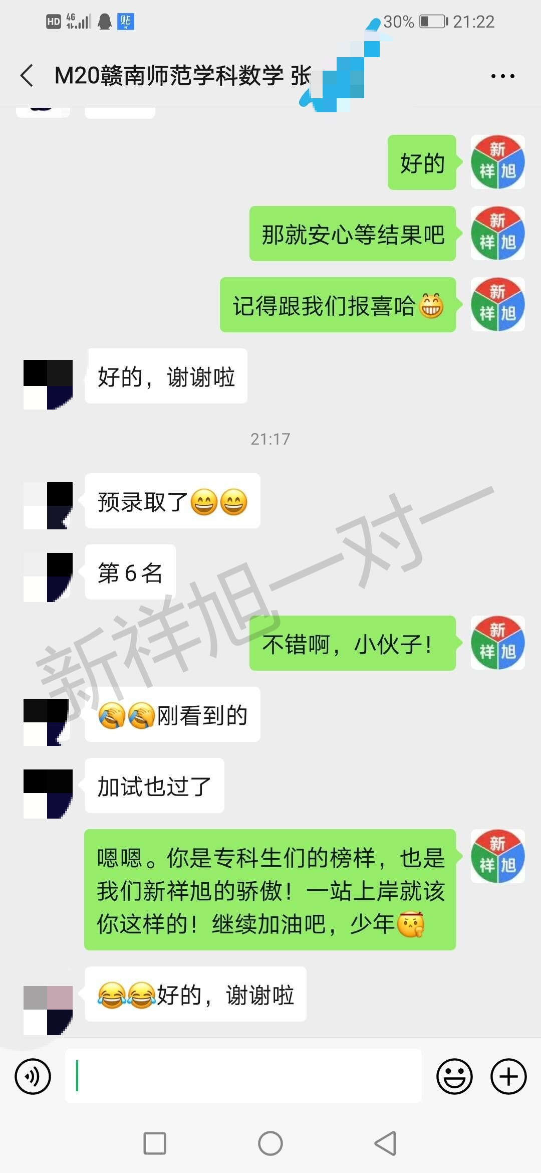 喜报:恭喜新祥旭2020年学员张同学被赣南师范大学学科教学专业成功录取