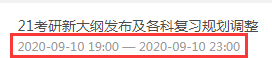 根据高教考试在线的官方消息,2021考研大纲将在9月10日发布。高教考试在线是高教社旗下的官方网站,而大家口中的红宝书考研大纲正是由高教社出版。可以说这一消息还是比较靠谱的。
