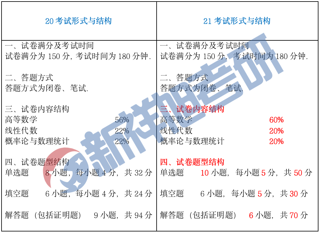 4. 考研数学结构性与考试难度发生较大变化,选择填空题分值大涨,多个知识点由了解更改为掌握,大家需要做好应对。
