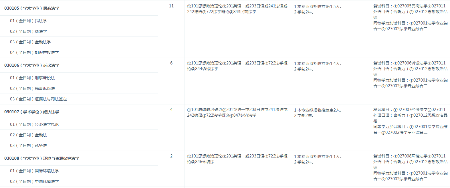 (2)报考前所学专业为非法学专业〔普通高等学校本科专业目录法学门类中的法学类专业[代码为 0301]毕业生、专科层次法学类毕业生和自学考试形式的法学类毕业生等不得报考〕。以同等学力身份报考者所修读的本科课程应为非法学类专业。