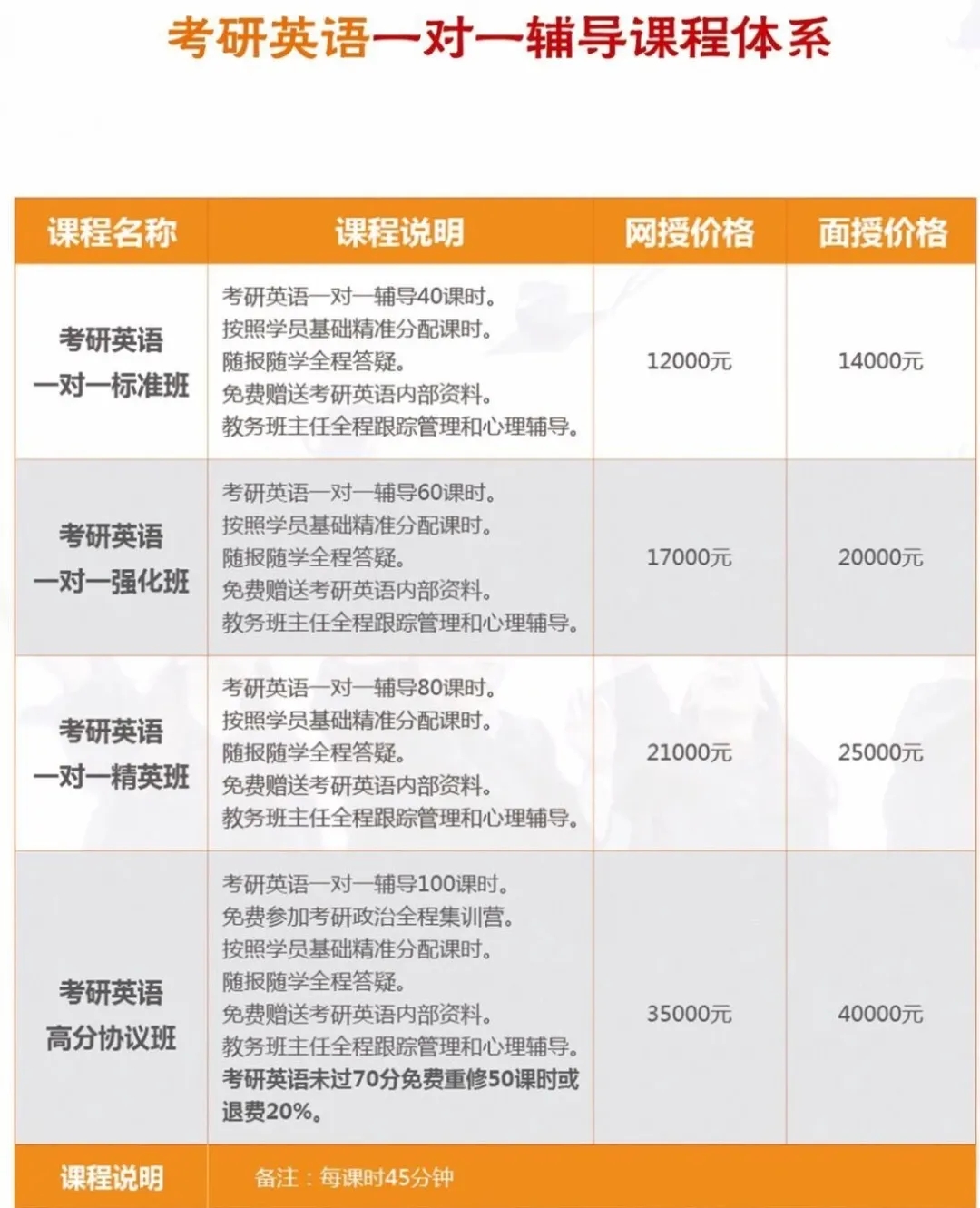 咨询课程-支付学费-签订协议-安排老师指定辅导计划(报名至考研结束全程辅导)-老师辅导-教务老师全程跟踪