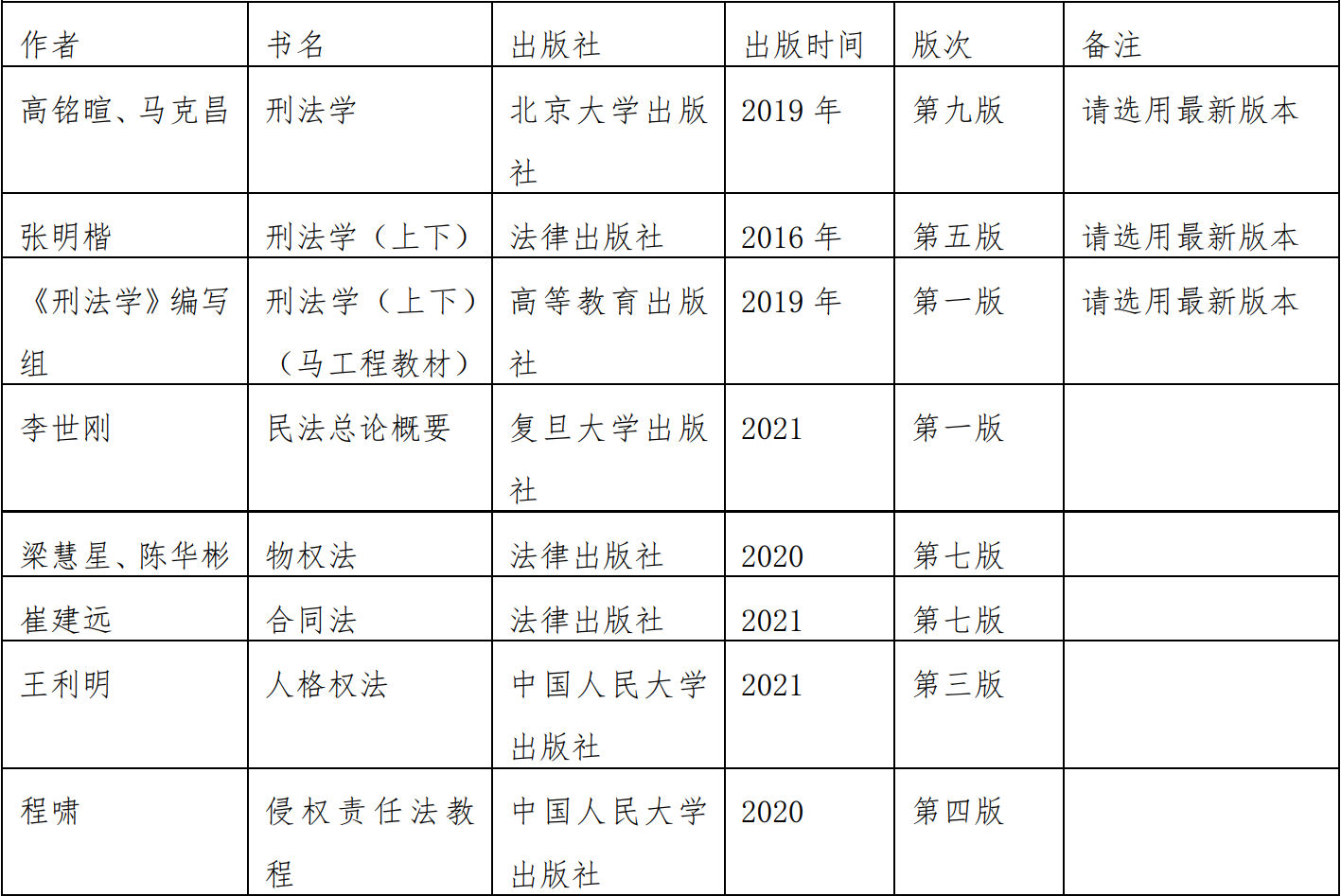2.民法学部分:民法体系与一般原理;民法基本原则;民法渊源与适用;民事法律关系;民事主 体;民事权利与义务;民事责任;法律事实;法律行为;代理;时效;物权法一般原理;物权的 特征、类型与效力;物权变动;所有权;用益物权;担保物权;非典型担保;占有;债法一般原 理;合同法一般原理;合同通则;典型合同;无因管理;不当得利;人格权法一般原理;具体人 格权;一般人格权;侵权责任法体系与功能;侵权责任归责原则与归责事由;侵权责任构成;侵 权责任承担与救济。