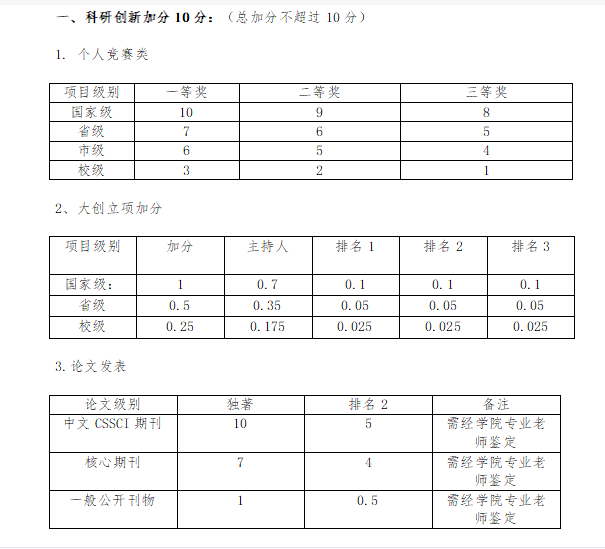 刚进大学时一直沉迷于各种学生会活动和校外的活动,对于未来没有什么目标,在学习上花费的时间也不多。但大一上学期结束后,我的成绩竟然在年级第七,这让我有点意外,“都没怎么学怎么还能考第七?要是我平时认真一点,期末好好复习是不是排名可以更靠前?”当时我就是这么想的。于是从大一下学期开始我就更注重自己的学习成绩,所以后面每学期我的成绩都维持在年级前三。在大二的时候,几个跟我关系好的学姐就跟我说保研的事情了,并提醒我“如果成绩不错,要早点打算,争取保研。”但我们学院保研名额少的可怜,竞争压力很大,所以一开始我是没有信心的,但我又是个很好强的人,所以就想着先努力看看嘛,总有人要赢,为什么不是我呢?在询问本专业往届学长学姐保研政策后,我找辅导员要来了一份每年保研加分细则的文件。于是我就把细则打印出来,时常对照着加分项目鞭策自己,每当拿到证书后,我会在对应的加分细则后打钩,那种成就感真的特别爽。(总分是15分,我们专业只有我一个人加满了。)因此,提醒所有有意向保研的学弟学妹们,一定要提前定目标,然后把大部分时间放在学习和做竞赛上,不要因为学生工作耽误太多的时间,也不要做无意义的彷徨。