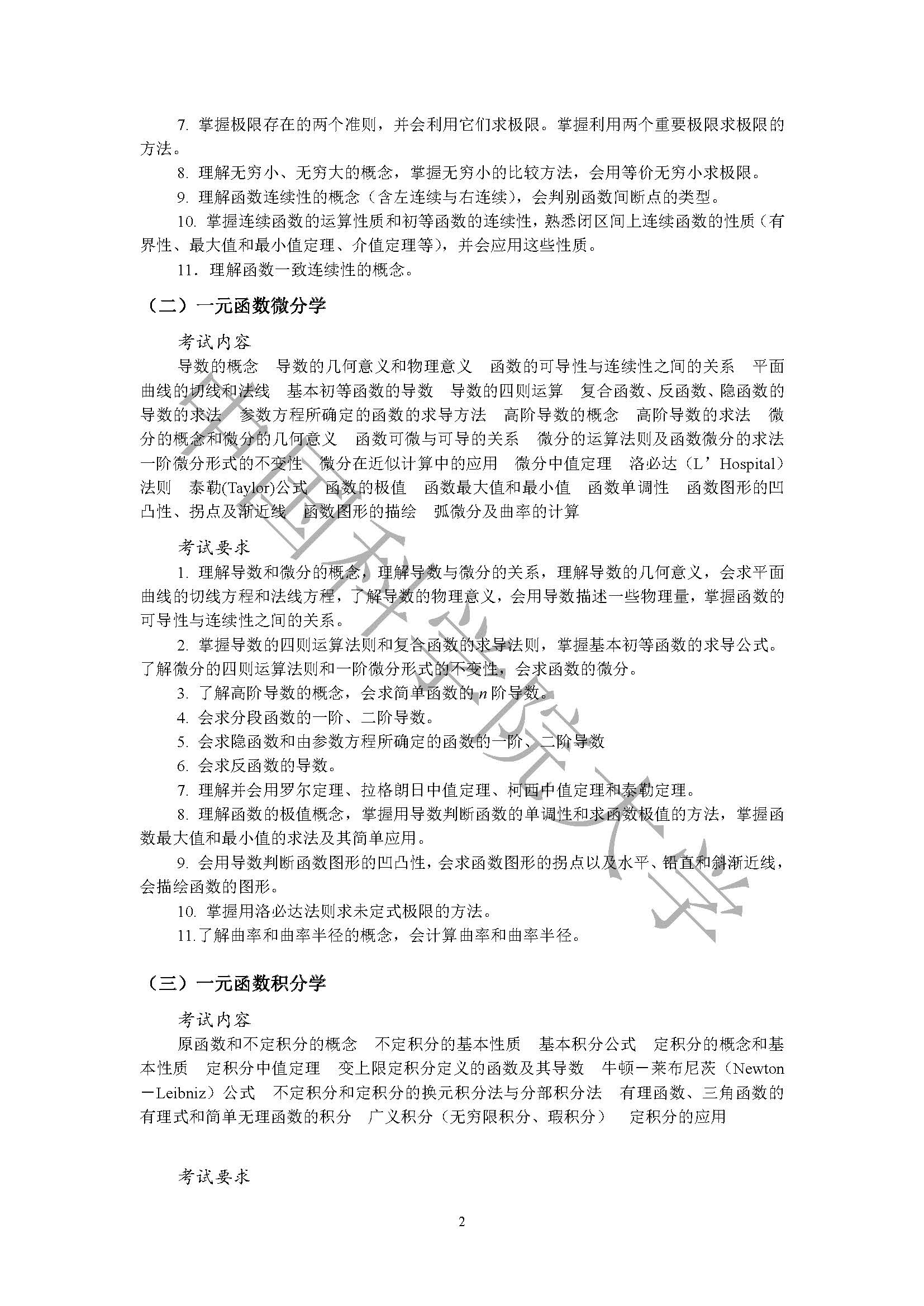2023年中国科学院大学考研:602高等数学(乙)考试大纲