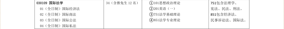 对外经济贸易大学法学院国际法学专业2023年考研招生专业目录(考试科目、招生人数)及专业课参考书目
