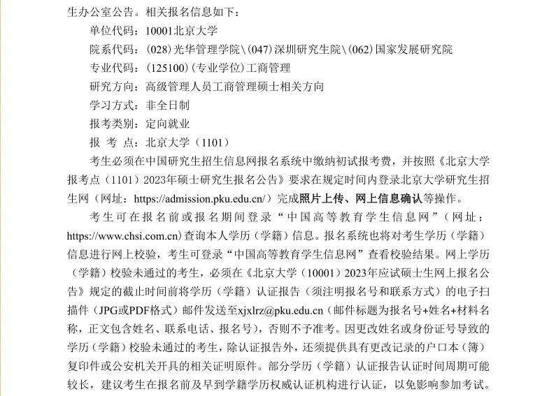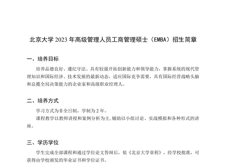 北京大学2023年高级管理人员工商管理硕士(EMBA)招生简章