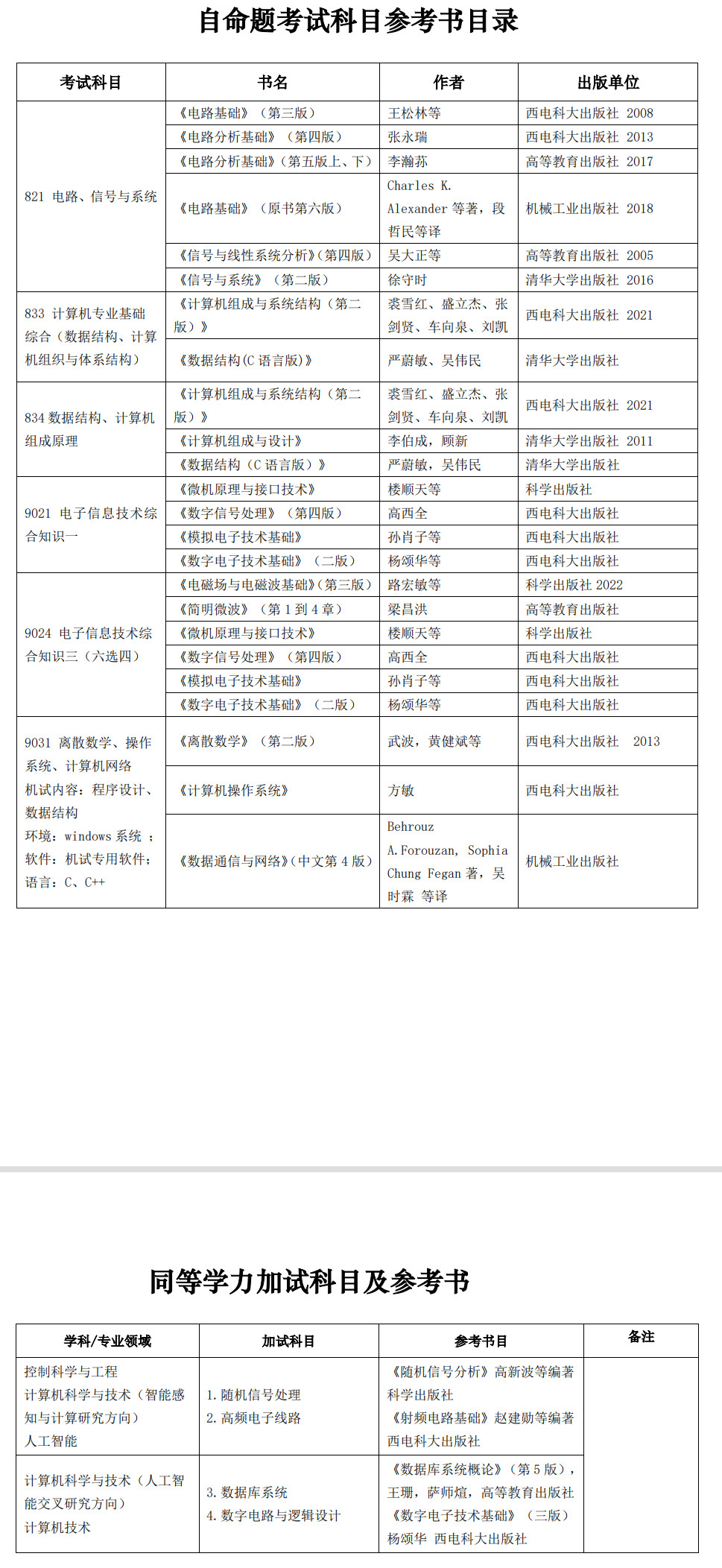 西安电子科技大学考研辅导班:2023年西安电子科技大学人工智能学院考研各专业参考书汇总