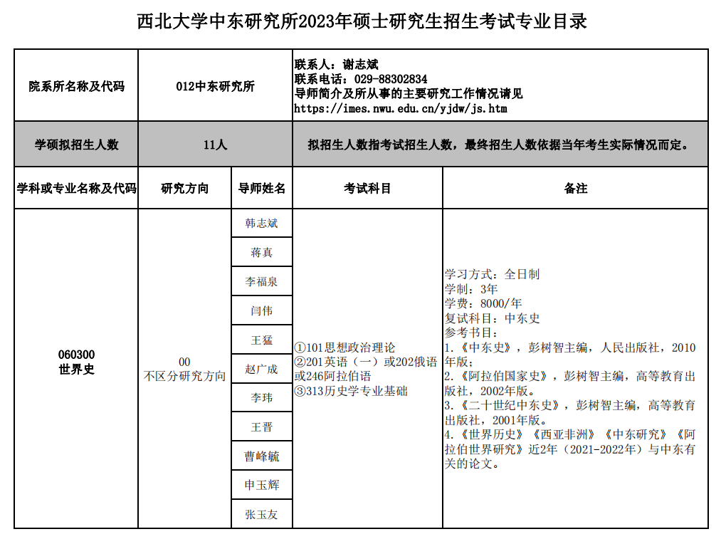 西北大学考研辅导班:2023年西北大学中东研究所硕士招生专业目录及参考书目
