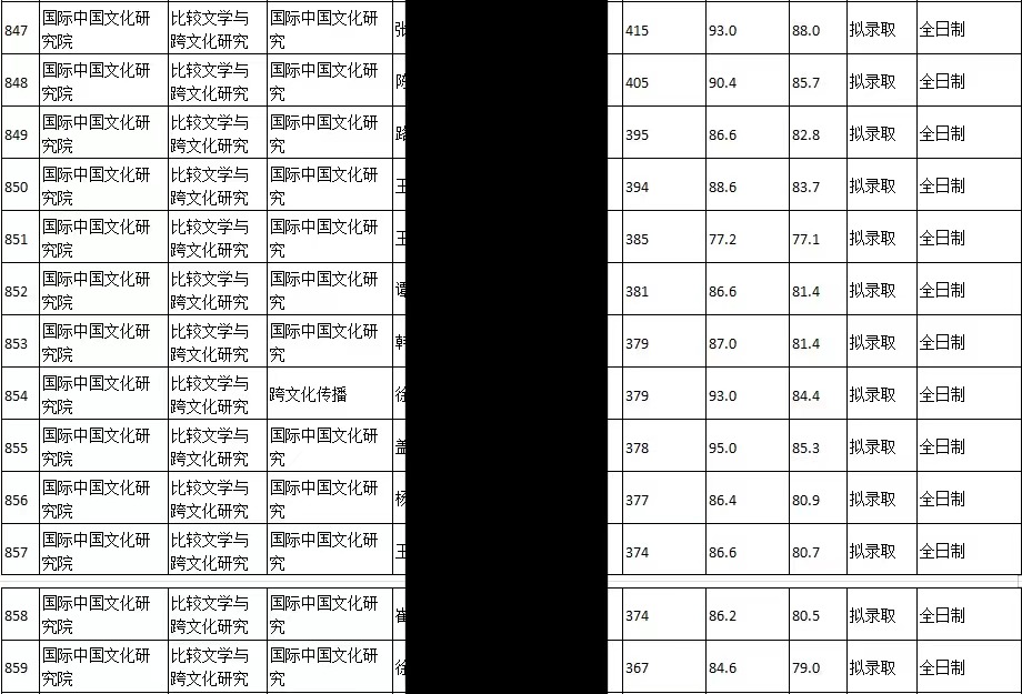 复试人数:13 拟录取:13 初试最高分:415 初试最低分:367