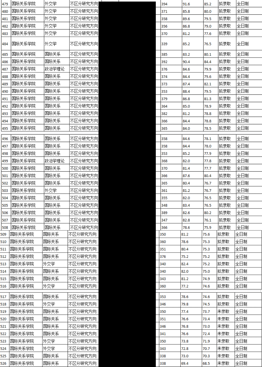 北外的国际关系学院一共有四个专业,分别为中外政治制度,政治学理论,外交学和国际关系。在考试时四个专业考同一套卷子,初试复试一起排名,大家入学之后会重新选择期望的研究方向。