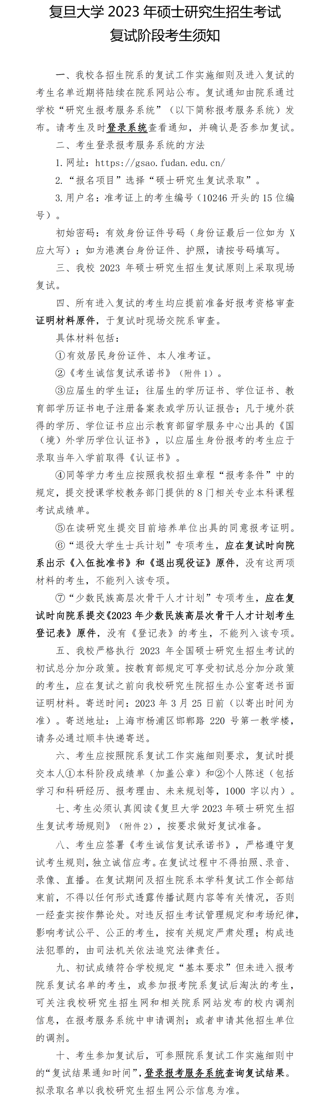 复硕堂考研:复旦大学2023年硕士研究生招生考试复试阶段考生须知