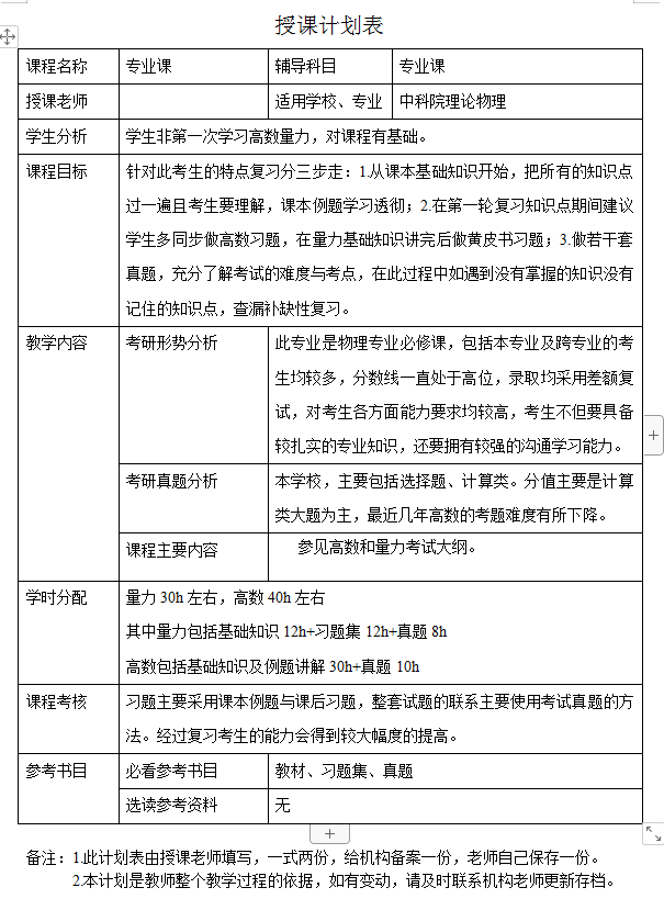 新祥旭考研:2024年中国科学院大学理论物理专业考研一对一辅导授课计划