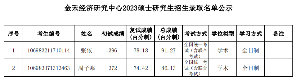 新祥旭西交堂:2023年西安交通大学金禾经济研究中心硕士研究生拟录取名单