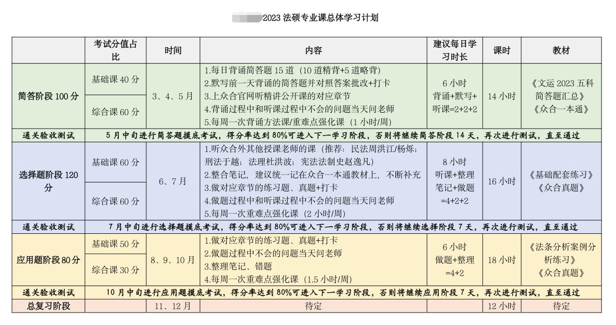 新祥旭2024年北京大学法律非法学考研参考书及一对一辅导授课计划