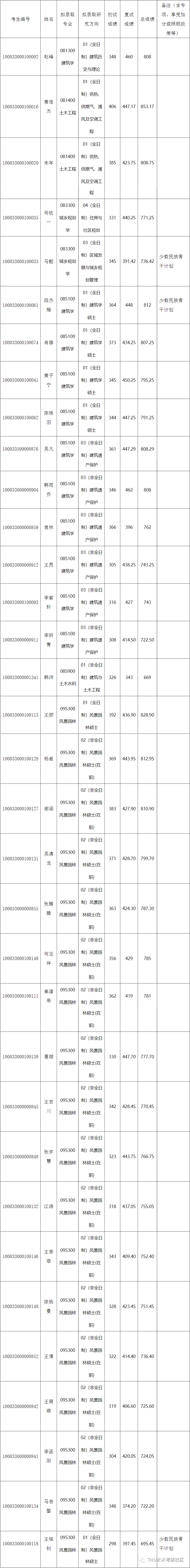 经综合考核和研究生招生工作领导小组讨论,报学校研究生招生工作领导小组批准,清华大学2023年建筑学院硕士研究生拟录取名单已确定,现予以公示。