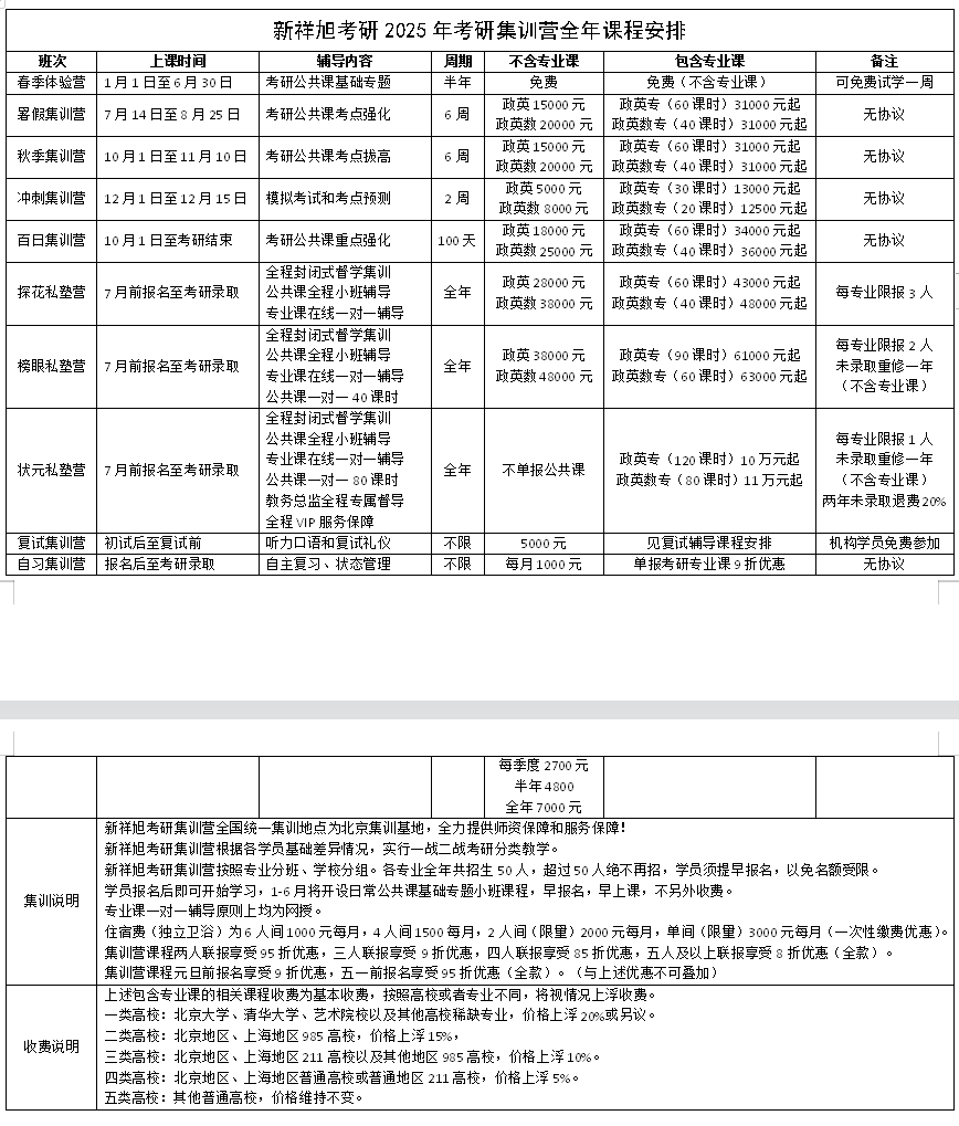 (四)新祥旭集训营全年课程安排