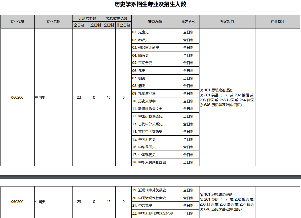 复试采取差额形式,分为中国史和世界史两个专业。