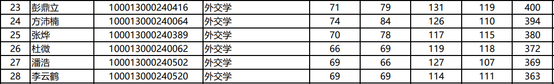 2023年:6人进复试(400、394、380、372、369、363);录取4人(400、372、363、394)