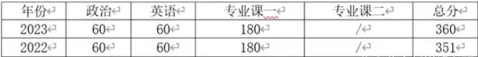 5、近四年来,各科目分数线趋于平稳状态,而总分数线存在波动,且2023年分数线最高;意味着难度在逐步增加,应更加重视专业课的复习,要早复习,避免走弯路。