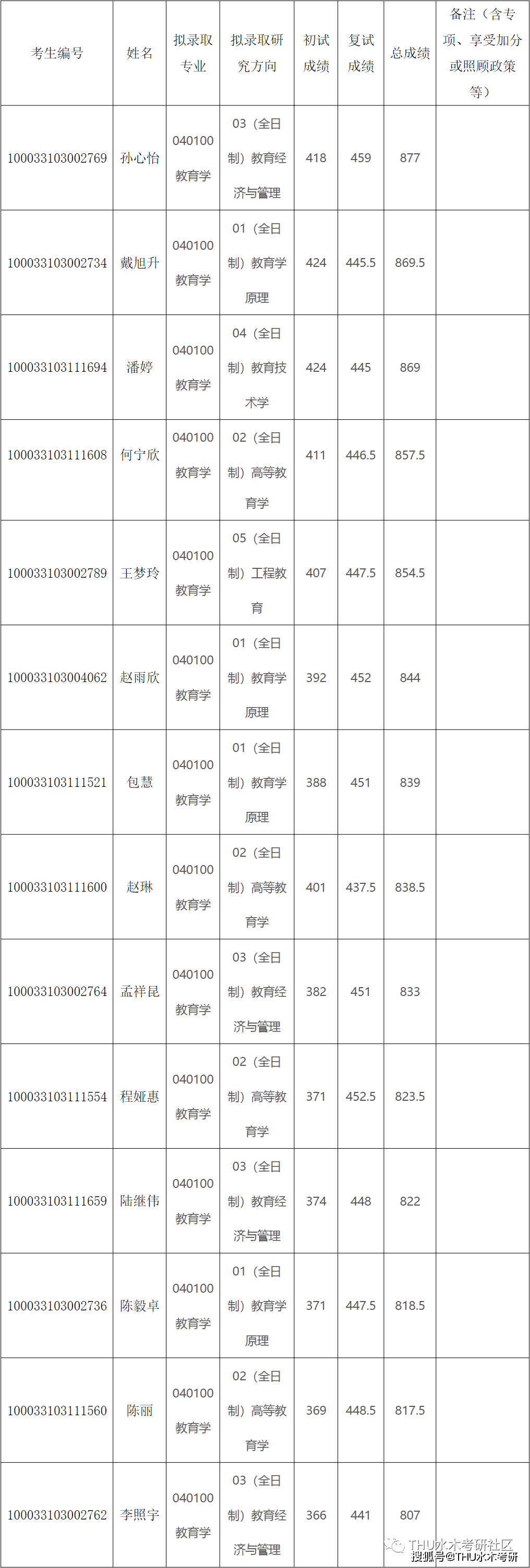 五、清华大学教育学考研复试分数线及录取名单