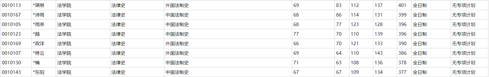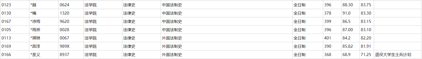 2023年:8人进复试(最高分401、最低分377);录取7人(最高分401,最低分一名退役大学生士兵计划368)