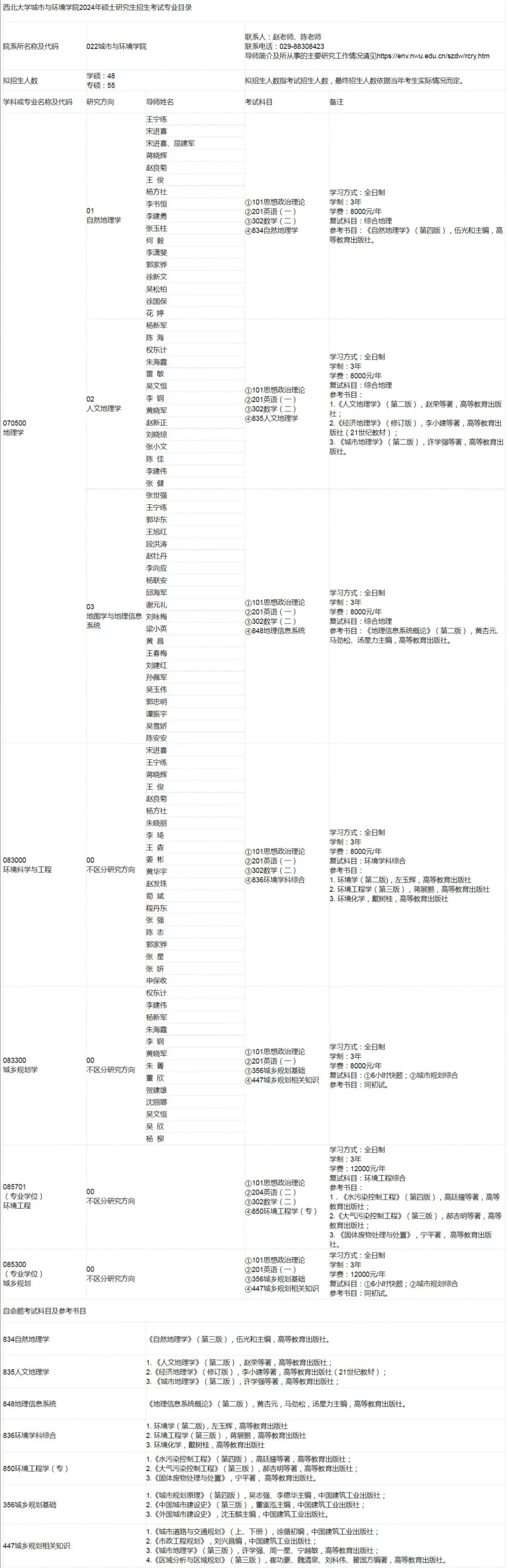 新祥旭考研:2024年西北大学城市与环境学院硕士研究生招生目录及参考书目