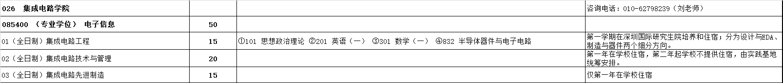 清华大学集成电路学院2024年硕士研究生统考招生专业目录、考试科目、招生人数