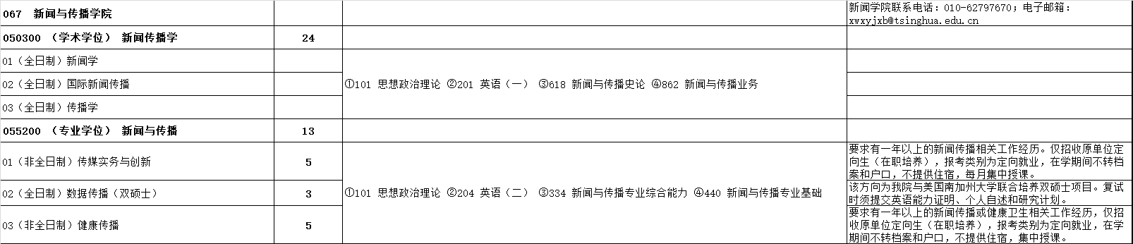 清华大学新闻与传播学院2024年硕士研究生统考招生专业目录、考试科目、招生人数