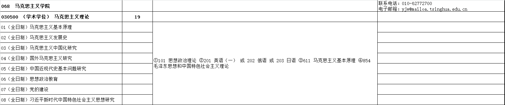 清华大学马克思主义学院2024年硕士研究生统考招生专业目录、考试科目、招生人数