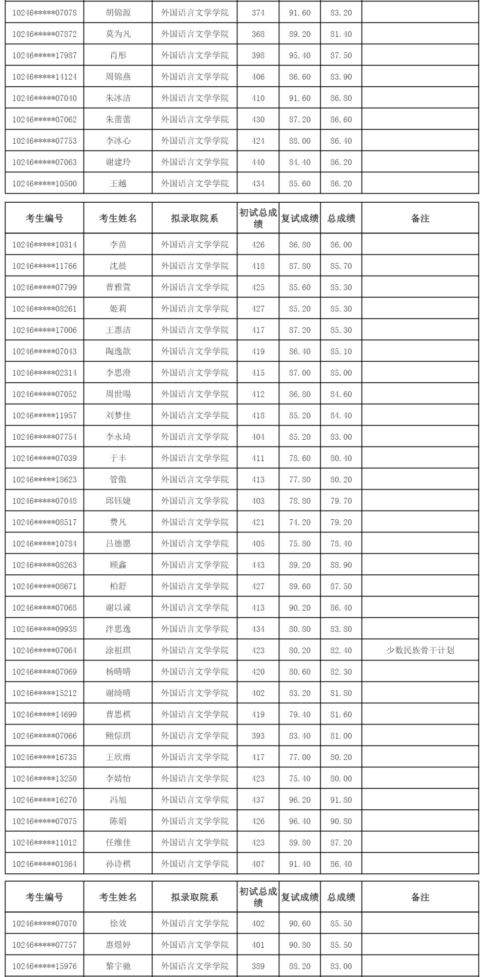 2024复旦大学外国语言文学学院硕士研究生录取名单