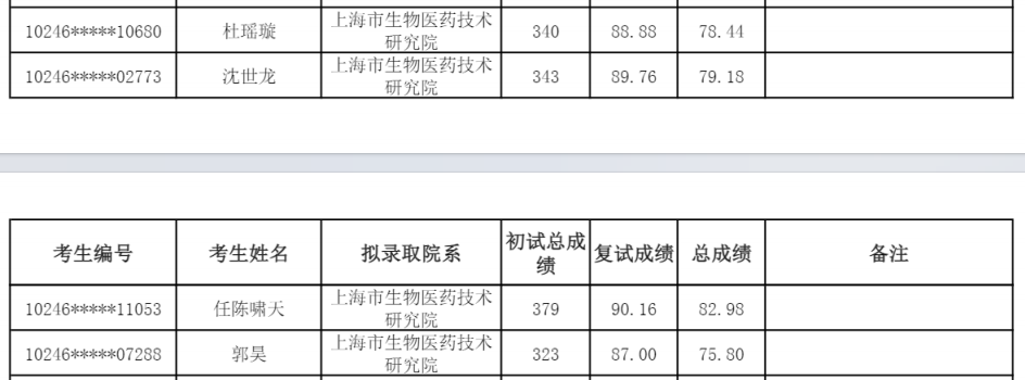 2024复旦大学上海市生物医药技术研究院硕士研究生录取名单