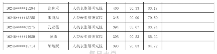 2024复旦大学人类表型组研究院硕士研究生录取名单
